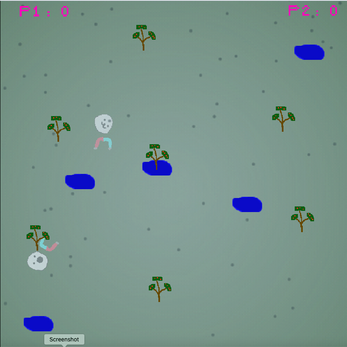 Pvp:. P1: wasd to move and space to bring p2 towards you, P2:arrow keys to move and click to bring p1 towards you. The goal is to bring the other player towards you and to touch them with your magnet.